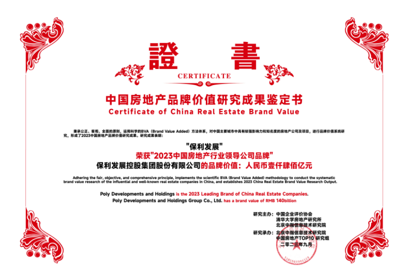 这也是保利发展控股连续十四年获得“中国房地产行业领导公司品牌”殊荣,彰显出企业强大的品牌实力,也彰显了保利发展控股在行业中的领导地位,将引领行业品牌价值再攀高峰,迎接高质量发展的新征程。